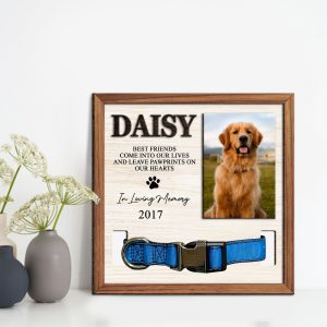 Luknlak Memorial Dog Collar Sign, Personalized Frame, Custom Cat Portrait, Pet Collar Plaque, Pet Loss Portrait, Dog Sympathy Gift